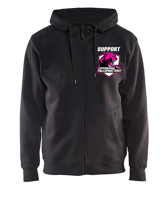 Levitä tyttö/naisjalkapalloilun sanomaa! Tämä aikuisten huppari on tyylikäs vaihtoehto kun haluat näyttää muille tukevasi Pallopanttereiden toimintaa ja mentaliteettia. Yhdessä olemme vahvempia kuin kukaan yksin \,,/